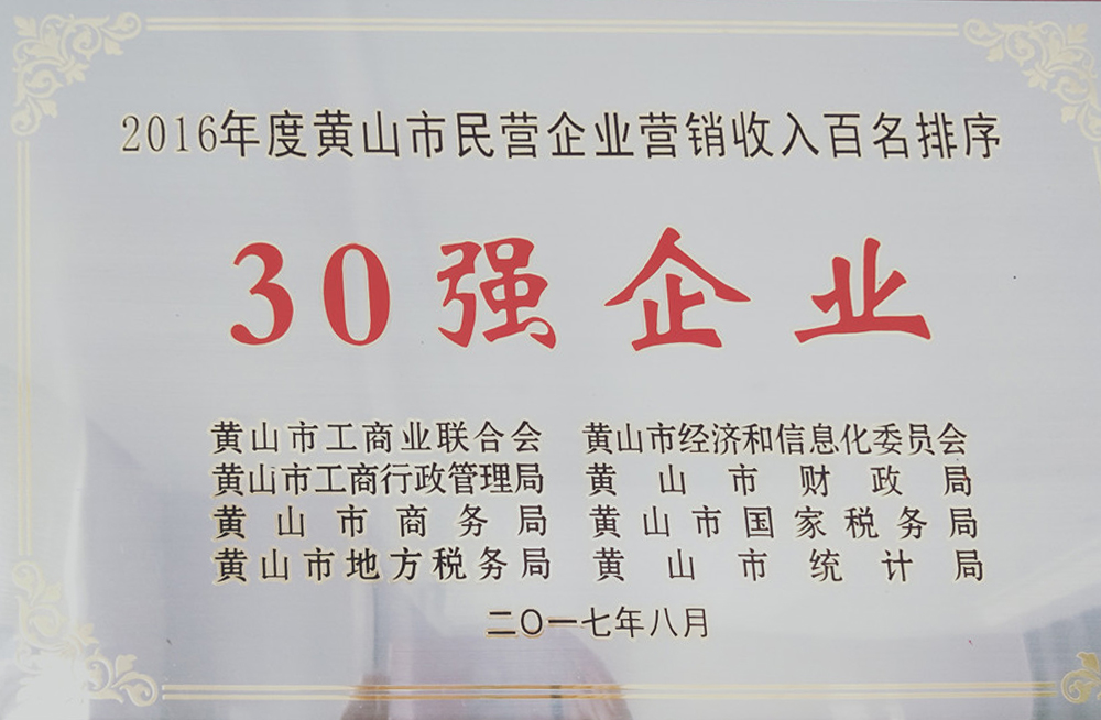 2016年黃山市民營(yíng)企業(yè)營(yíng)銷收入30強(qiáng)